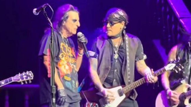 La estrella de "Piratas del Caribe" acompañó con su guitarra a Cooper en su presentación en el The O2 Arena de la capital inglesa, tocando el éxito "Paranoid" de Black Sabbath.