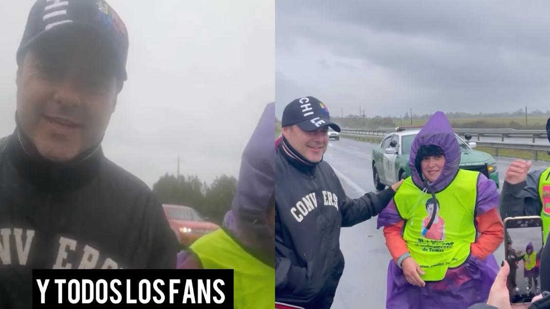 No obstante, este viernes, mientras el artista se dirigía a Temuco para una presentación, divisó en plena carretera a Gómez y Marcos Reyes, presidente de la Corporación Familias Duchenne que la acompaña en la travesía, deteniéndose en el lugar para acompañar a Camila.