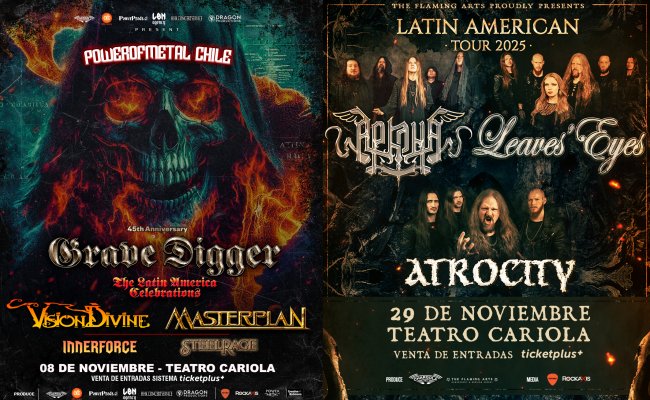 El primero es PowerOfMetal Chile, que el 8 de noviembre reunirá a Grave Digger, Masterplan y Vision Divine, todas bandas europeas de heavy/power metal; y que tiene entradas a la venta en Ticketplus, desde 51.750 pesos.
