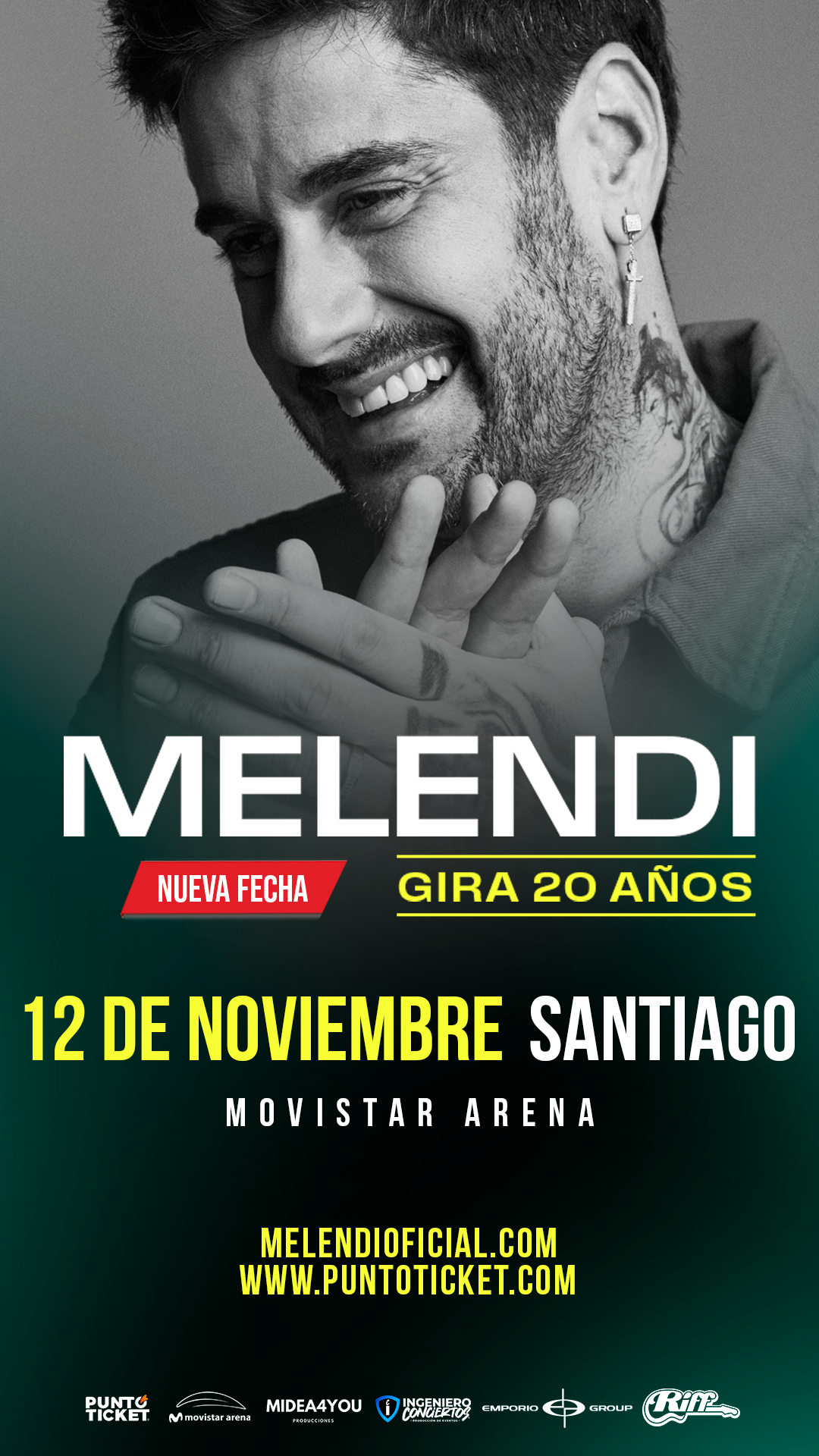 En un éxito se transformó la visita a Chile que durante noviembre realizará el cantante español Melendi, pues sumó un tercer show a su agenda, que ya contemplaba actuaciones los días 13 (Movistar Arena) y 14 (Arena Monticello).
