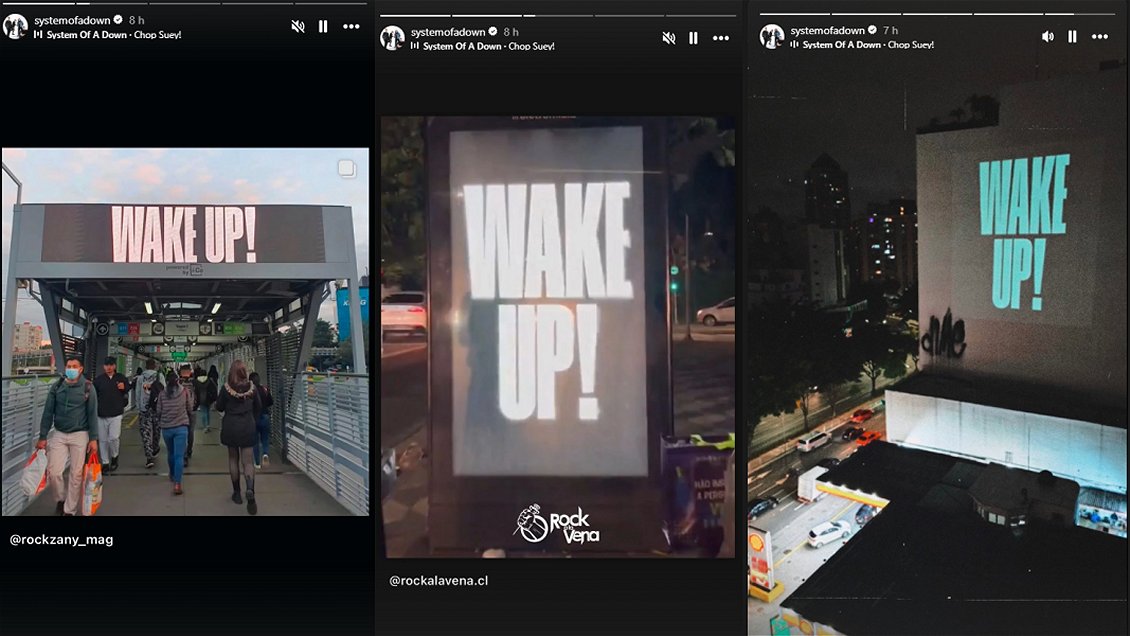 Luego, en Brasil, Chile y Argentina -y posteriormente en Perú y Colombia- aparecieron en la vía pública avisos con la frase "Wake up!", clara referencia al inicio de una de sus más emblemáticas canciones: "Chop Suey!".