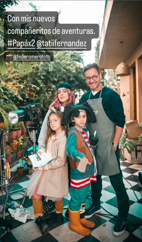 "Con mis nuevos compañeritos de aventuras #Papáx2", escribió Vicuña, quien etiquetó a la exparticipante de Rojo y bailarina, presunta hija del intérprete en la ficción.