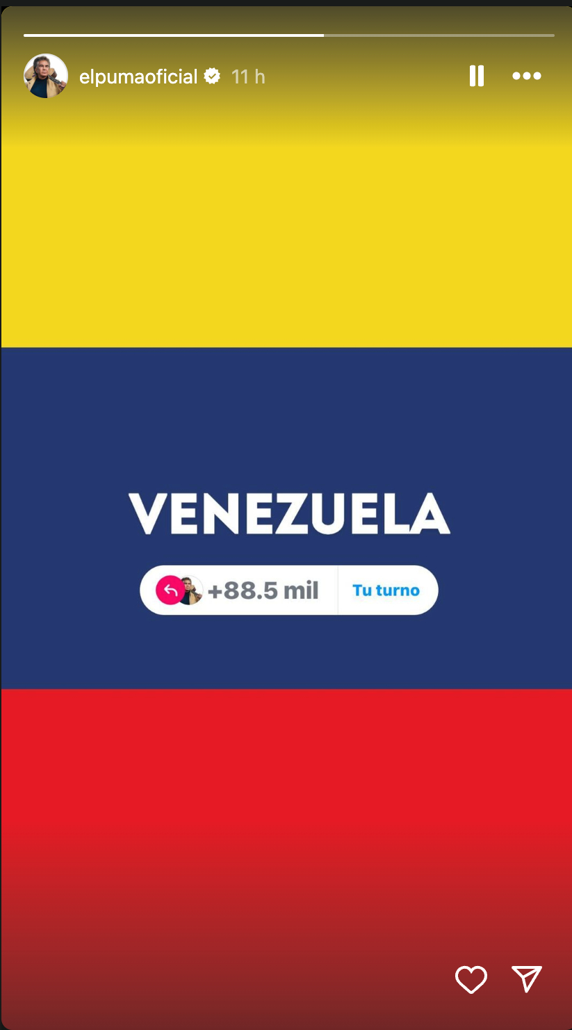 Asimismo, José Luis "El Puma" Rodríguez compartió una imagen con la bandera en apoyo a su país.