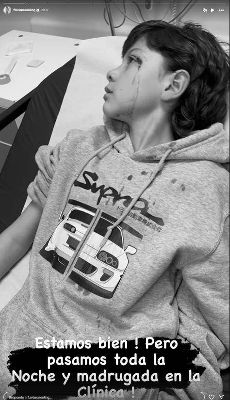 "Estamos bien, pero pasamos toda la noche y madrugada en la clínica", escribió la empresaria en un registro de su hijo recostado en la cama de la clínica, con un hilo de sangre en su cara.