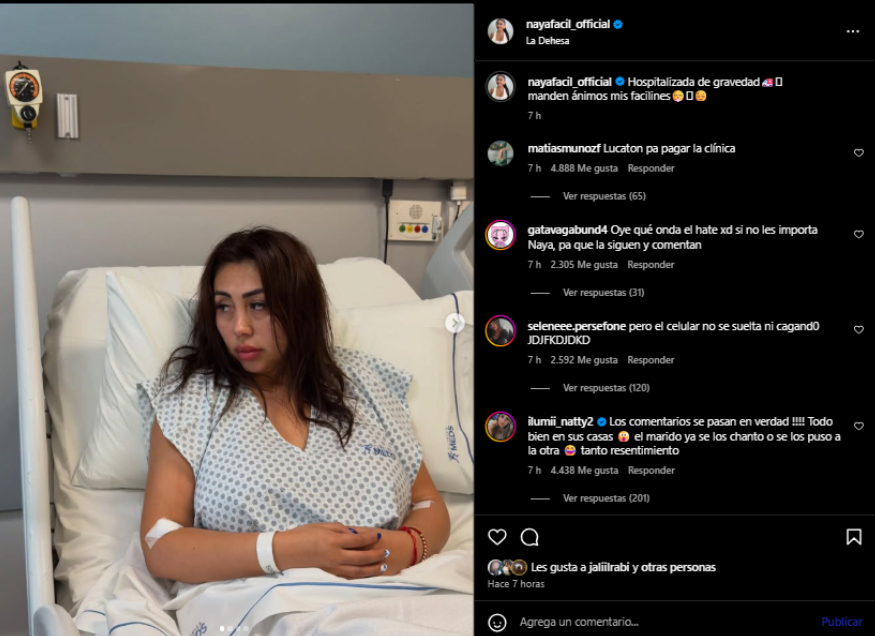 Desde la clínica, Naya ha compartido imágenes de su recuperación, mostrando ánimo pese a la gravedad: "Les muestro mi pieza de hotel". Naya también reveló que, junto a la infección, fue diagnosticada con anemia, lo que agrava su cuadro clínico.