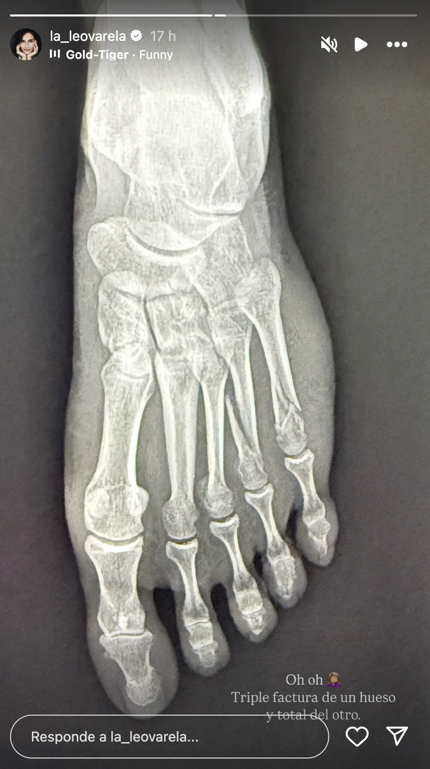Más tarde subió una imagen de la radiografía de su pie y un lapidario diagnóstico: "Oh, oh, triple fractura en un hueso y (fractura) total en otro", escribió Varela.