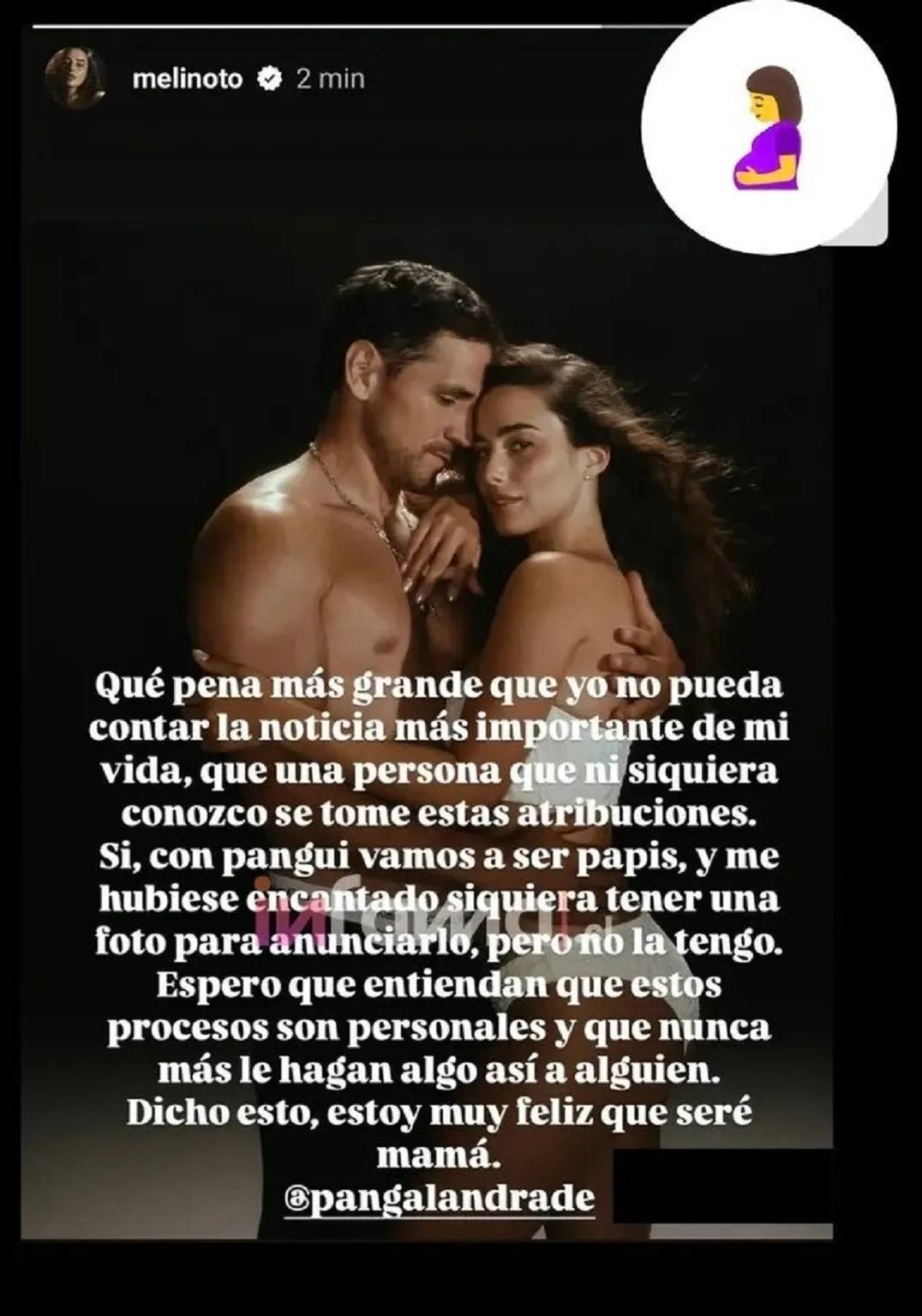 "Sí, con Pangui vamos a ser papis, y me hubiese encantado siquiera tener una foto para anunciarlo, pero no la tengo", continuó.