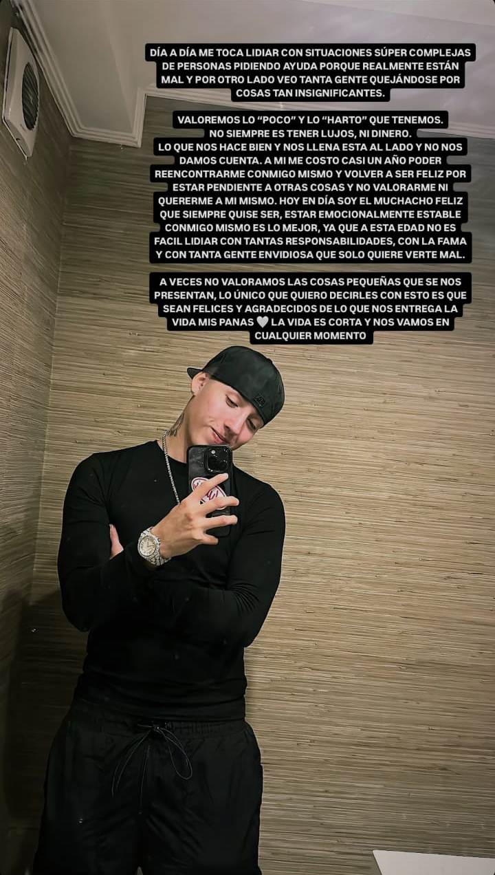 "Día a día me toca lidiar con situaciones súper complejas de personas pidiendo ayuda, porque realmente están mal y por otro lado, veo tanta gente quejándose por cosas tan insignificantes", comenzó el cantante urbano.