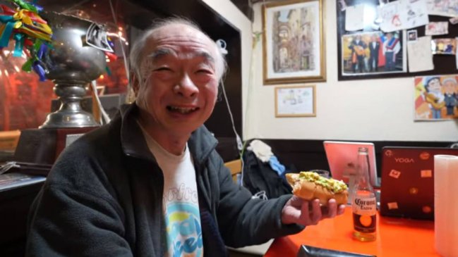El creador de contenido luego de probar la gastronomía japonesa, llegó hasta este restaurant de comida chilena junto a otros compatriotas. Allí, compartieron unas piscolas y comieron completos, junto a la esposa japonesa de uno los acompañantes.