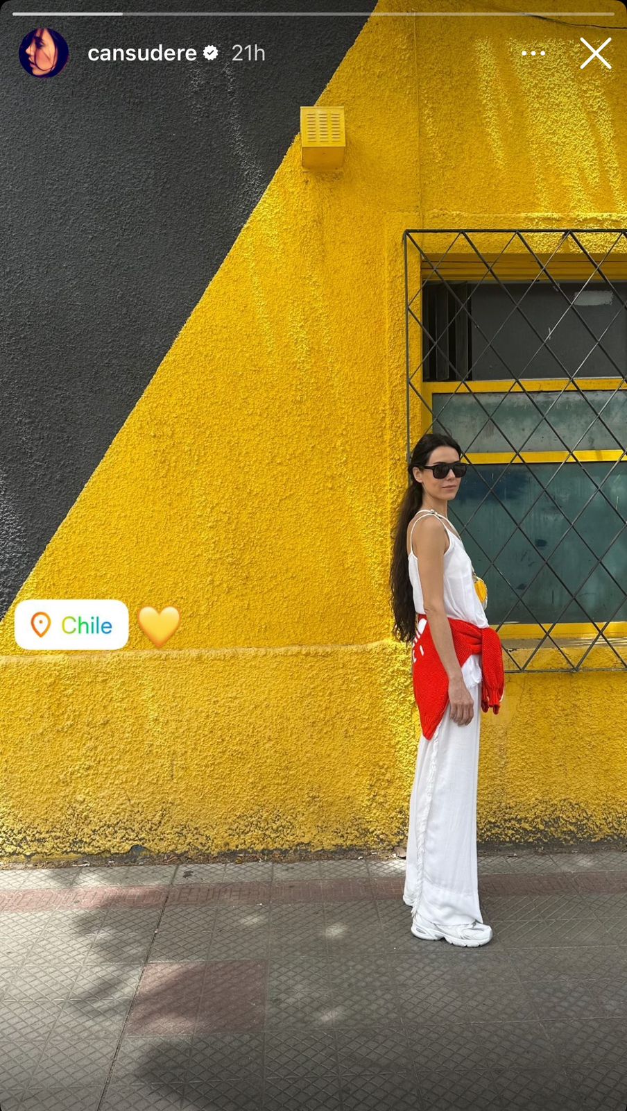 A través de sus historias de Instagram, la también modelo compartió una fotografía mientras paseaba por las calles de Santiago.