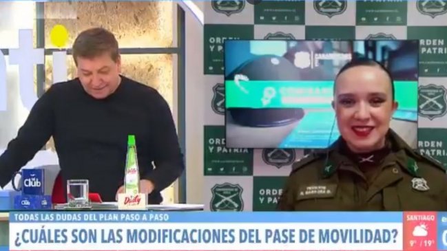 Todo pasó en un bloque donde los animadores hacían preguntas sobre la Comisaría Virtual y los permisos a la teniente de Carabineros Nicole Barrera.