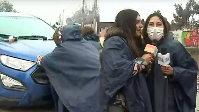 "Entre dos mujeres": Periodistas de Chilevisión y Canal 13 rescataron auto atrapado en calle anegada