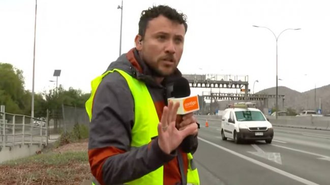 Tras reportear un accidente en la Autopista Central a la altura de San Bernardo, el notero se tomó unos segundos al cerrar el despacho para despedirse en pantalla del programa.