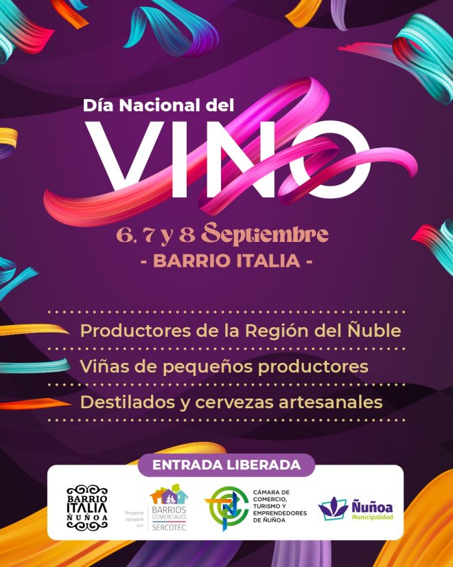 Más de 50 viñas de autor, de las cuales 30 provienen del Valle del Itata, Región de Ñuble, serán parte de la celebración del Día del Vino que se llevará a cabo los días 6, 7 y 8 de septiembre en el Barrio Italia, en la comuna de Providencia.