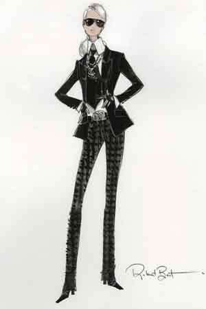 Lucirá, en particular, una entallada americana negra con vistosas solapas y los ajustados vaqueros negros pitillo que gusta portar el propio Lagerfeld.