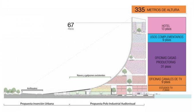 El edificio Costanera Center ya no será el más alto de América Latina. Argentina anunció la propuesta de la torre emblema para el polo audiovisual en la isla Demarchi, Buenos Aires, la que tendrá 335 metros y 67 pisos. Se espera esté listo en 2019.