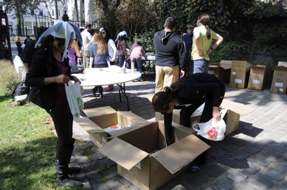 Argentinos residentes en Chile llegaron hasta la embajada de ese país en nuestro territorio, para entregar ayuda a las familias damnificadas por las inundaciones provocadas por intensas lluvias ne la nación trasandina.