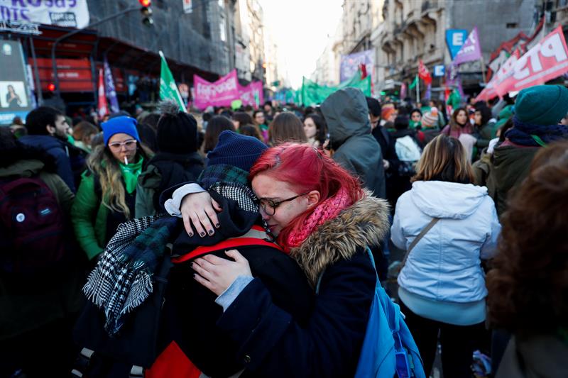 Miles de personas celebraron la aprobación del aborto en Argentina que se votó esta mañana en la Cámara de Diputados tras 23 horas de debate. Ahora el proyecto pasará al Senado.