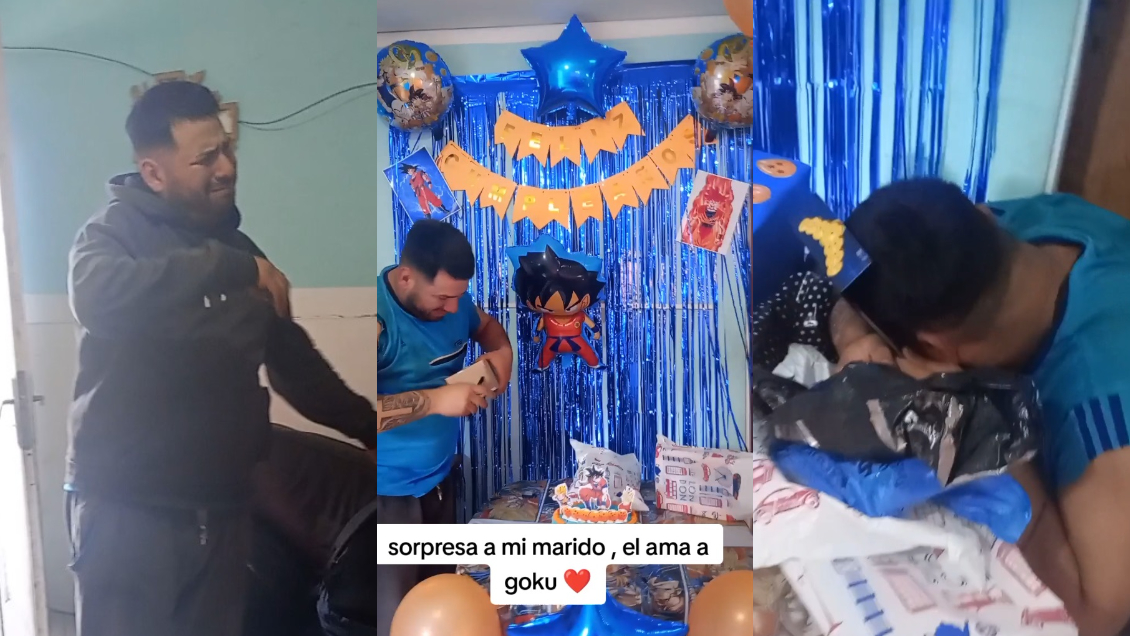 Un hombre se viralizó en redes sociales luego que rompió en llanto cuando su esposa lo sorprendió con un cumpleaños con temática de Dragon Ball.