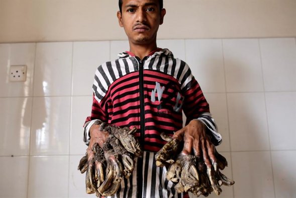 En Bangladesh, Abul Bajandar sufre una extraña enfermedad conocida como epidermodisplasia verruciforme. El hombre de 26 años presenta severas mutaciones en sus manos y pies invadidas por verrugas que le impiden la movilidad. En tanto, un equipo médico especialista en Dacca buscará mejorar la calidad de vida de llamado