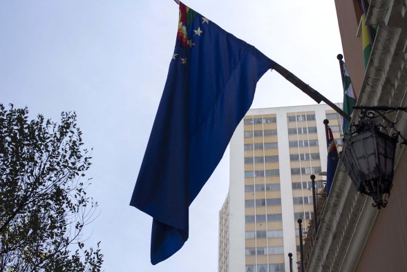 Conoce la bandera de la "reivindicación marítima" de Bolivia Publicado: Lunes, 4 de Mayo de 2015 2 de 6 Este lunes Evo Morales izó la bandera de la reivindicación marítima, en el inicio de los alegatos de Chile en La Haya. Conócela acá. Este lunes Evo Morales izó la bandera de la reivindicación marítima, en el inicio de los alegatos de Chile en La Haya. Conócela acá.UNO