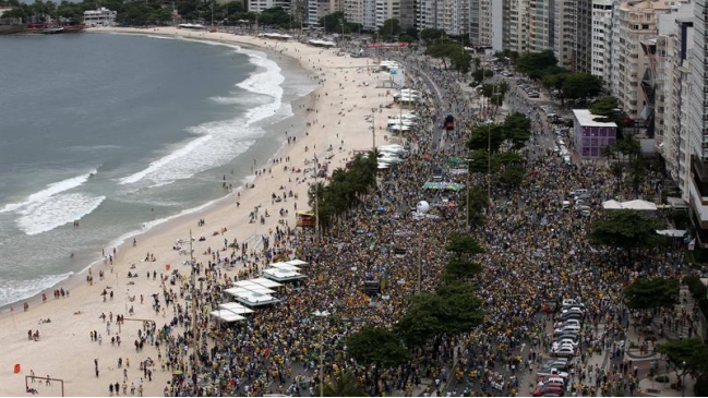 La mayor concentración tuvo lugar en la emblemática playa de Copacabana, en Río de Janeiro, donde varios miles de cariocas lograron cortar el tráfico en la Avenida Atlántica para hacer oír sus demandas.