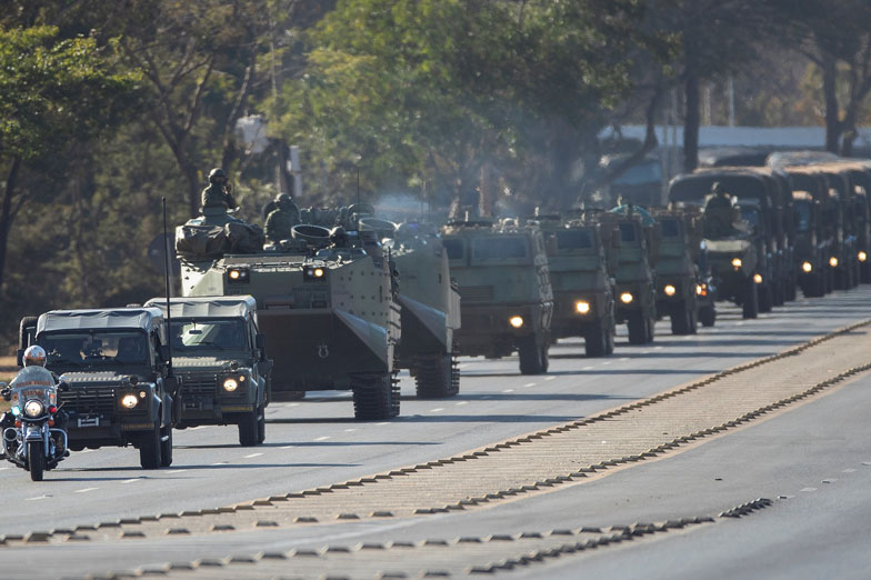 Un convoy militar es visto en la entrada principal de la Esplanada dos Ministérios, en el Palacio presidencial. (Foto:EFE)