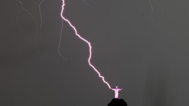 Una fotografía de EFE capturó el momento exacto en el que el fenómeno meteorológico impactó en la mano derecha del Cristo Redentor el jueves por la noche, cuando se registró una tormenta en la denominada "Cidade Maravilhosa".