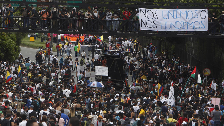 La protesta nacional fue motivo de controversia debido a que Colombia atraviesa su tercer y peor peak de la pandemia, con diez días seguidos acumulando más de 400 muertes por Covid-19, e incluso este miércoles se alcanzó un récord de 490 defunciones.