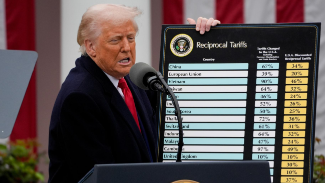 Trump impuso un arancel general del 10% a todas las importaciones; del 20% a los productos de la UE; uno adicional calculado a otros países; y del 25% al sector automotriz, lo que afectará principalmente a Europa, Asia y a las bolsas de comercio.