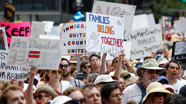 El presidente emitió ese tuit cuando muchas de las multitudinarias protestas en las principales ciudades del país ya habían terminado, pero no hizo comentarios sobre las marchas, que pedían reunir a las familias de inmigrantes separadas desde abril y acabar con la criminalización de los indocumentados.