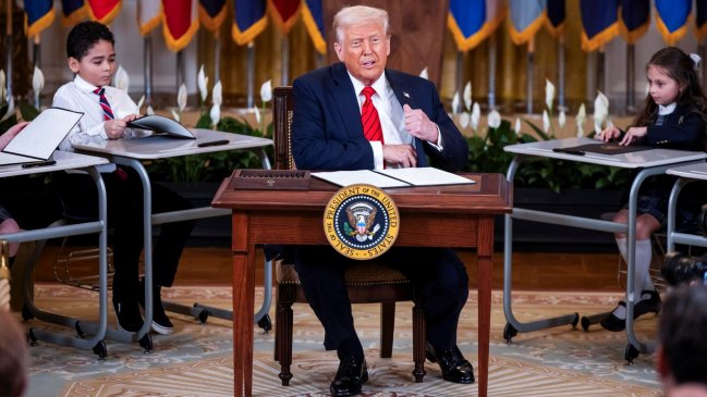Trump firmó el decreto en la Casa Blanca rodeado por una docena de niños sentados en pupitres, evento que también presenciaron gobernadores republicanos como Ron DeSantis (Florida), Jeff Landry (Louisiana), Bill Lee (Tennessee) o Kim Reynolds (Iowa), o el congresista, también republicano, Rick Allen.