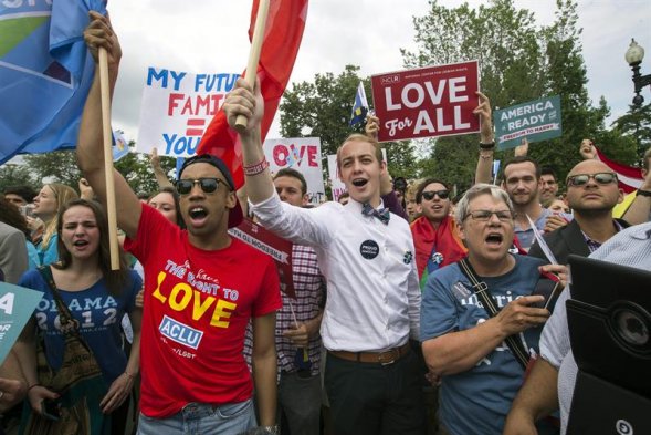 El Tribunal Supremo de Estados Unidos falló este viernes a favor de la legalización del matrimonio entre personas del mismo sexo en todo el país, una decisión histórica que anula la potestad de los estados para prohibir las uniones entre homosexuales.