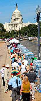 La espera fue aliviada por las autoridades, quienes extremaron las medidas de seguridad y colocaron puestos con carpas, botellas de agua y ventiladores, mientras la cola zigzagueaba hasta la entrada al Capitolio. (EFE)