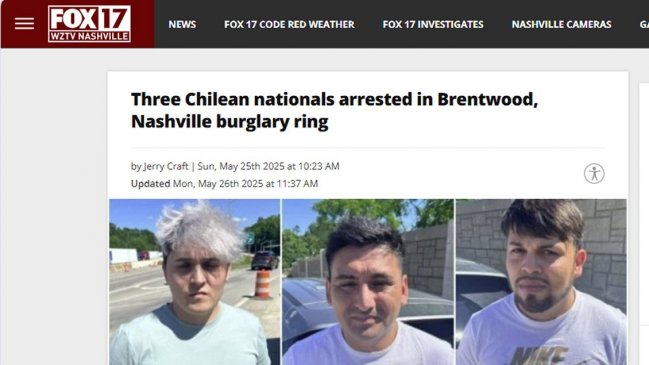 La policía de Brentwood, parte del área metropolitana de Nashville, detuvo a tres chilenos vinculados a una red de robos en hogares de la ciudad y otras partes de Estados Unidos.