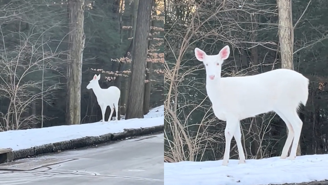 A través de redes sociales se viralizó un video en el que se puede ver a un ciervo albino al costado de una carretera en Carolina del Norte, Estados Unidos.