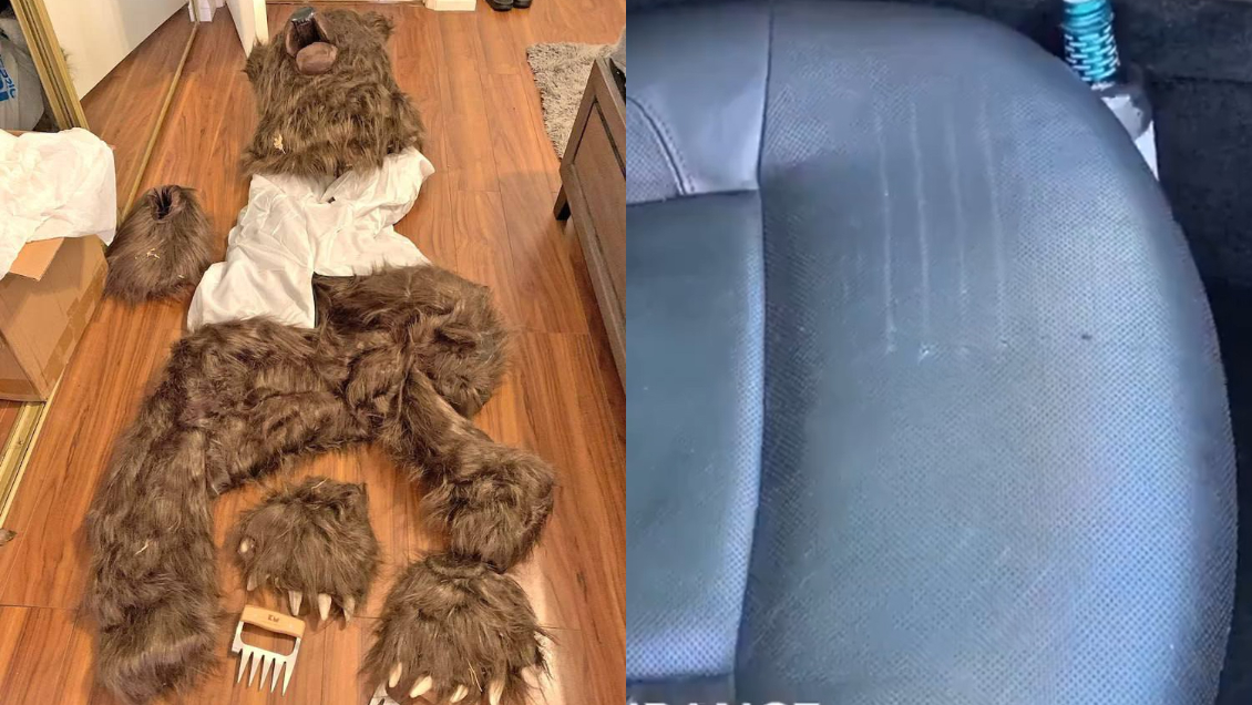 Tras realizar una orden de allanamiento en el hogar de los sospechosos, la policía encontró un disfraz de oso con pelaje marrón y patas acoplables para los pies y las manos; y con herramientas de metal que aparentemente podrían haber sido utilizadas para simular marcas de garras en los asientos.