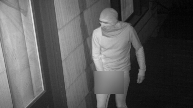 Semanas después, en febrero, una cámara de visión nocturna ubicada en la residencia de la mujer registró al individuo al lado de la puerta principal, disfrazado con un traje y masturbándose.