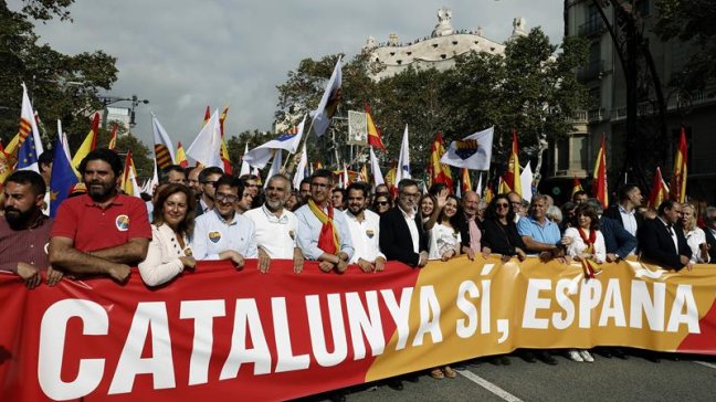 Bajo el lema "Cataluña sí, España también", la marcha, convocada por la organización Sociedad Civil Catalana (SCC) y otras 10 entidades, recorrió el Paseo de Gràcia, una de las principales avenidas de la ciudad.