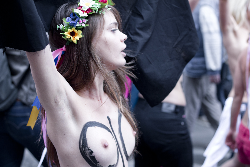 Su particular forma de protesta con puño en alto, semidesnudas y portando coronas de flores, junto a su animadversión hacia los antiabortistas y la Iglesia, son sus señas de identidad.