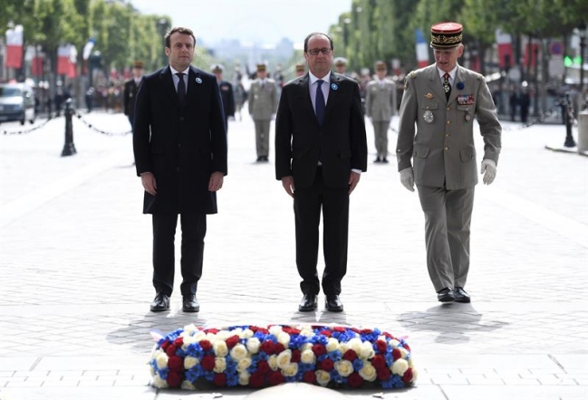 En su primer acto como presidente electo, Macron homenajeó a las víctimas de la Segunda Guerra Mundial cuando se cumplen 72 años de la victoria aliada frente a la Alemania nazi.