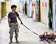 England es una de las soldados que, junto a otros compañeros, aparece en las fotos publicadas, sonriendo y sosteniendo una cuerda atada al cuello de un prisionero desnudo y tirado en el suelo de la cárcel de Abu Ghirab, en las afueras de Bagdad.