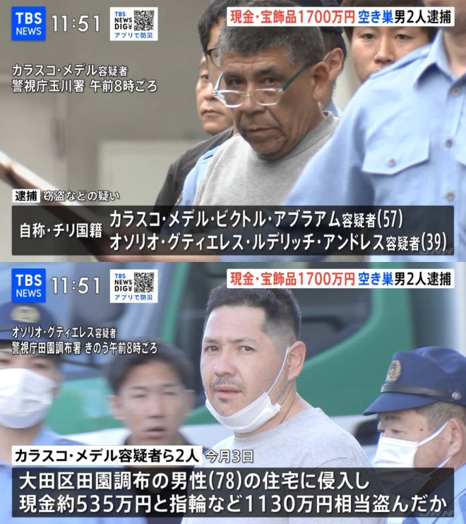Medios japoneses dieron a conocer la detención de dos ciudadanos chilenos por una serie de robos en hogares de Tokio, entre ellos el que afectó a la casa de un adulto mayor en la exclusiva zona de Denenchofu y del que huían con un millonario botín.