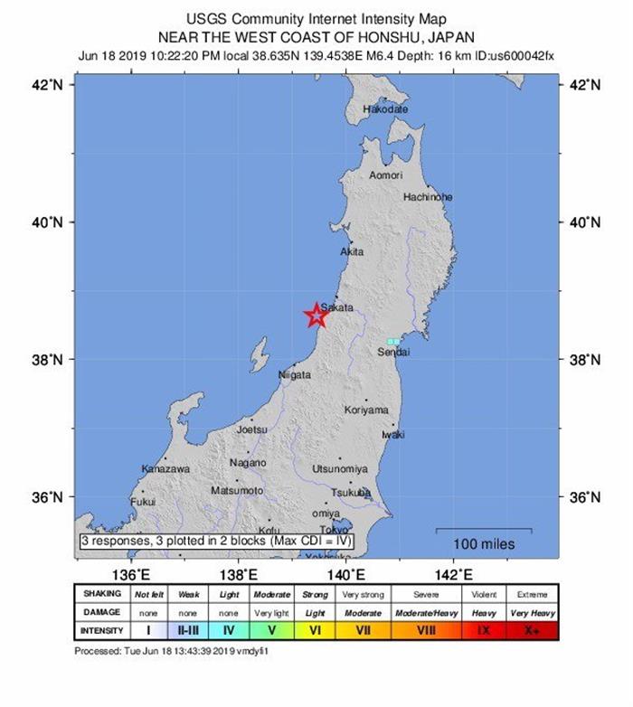 De acuerdo con dicho organismo, En Niigata la intensidad fue de 6 grados en el rango superior de la escala japonesa (de 7 grados), lo que indica un violento movimiento sísmico; mientras que en Yamagata la intensidad fue de 6 grados en el rango inferior.