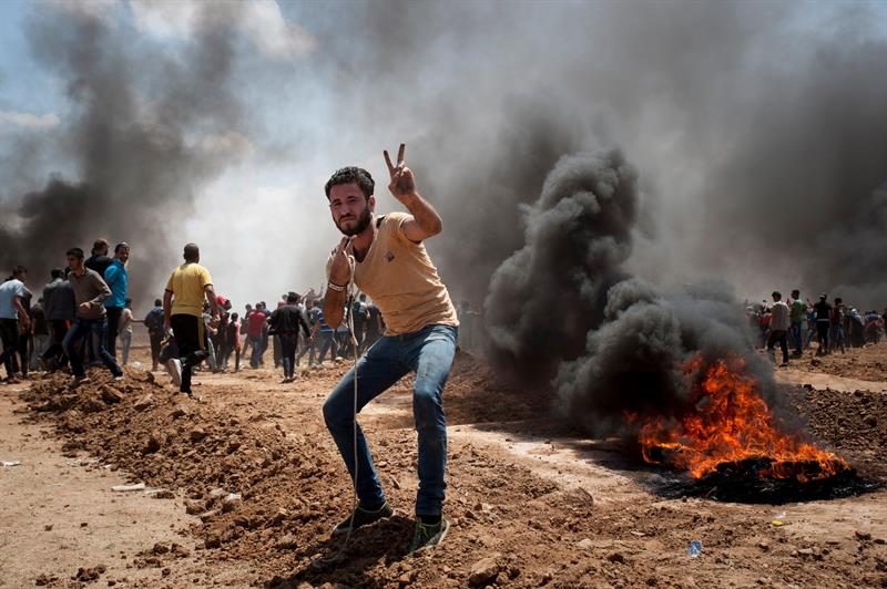 Manifestantes palestinos han protagonizado protestas este lunes, convocadas por todas las facciones en el marco de la Marcha del Retorno que se han hecho coincidir con el traslado de la Embajada de EE.UU. a Jerusalén. Los palestinos muertos por fuego israelí ascienden ya a 41 y la cifra de heridos se eleva a 1.960, entre ellos 200 menores.