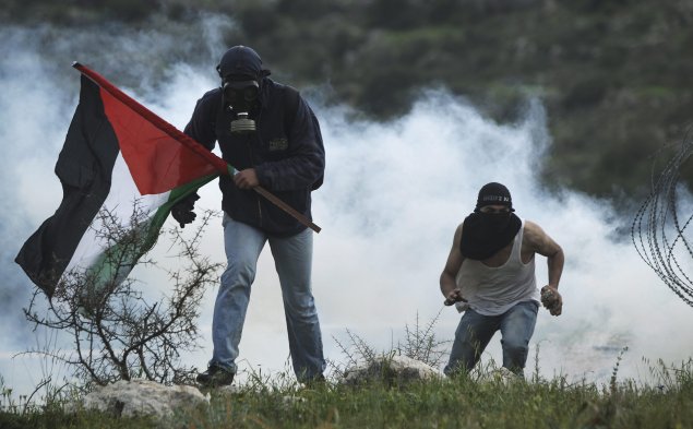 Soldados israelíes se enfrentaron este viernes con manifestantes palestinos por el asentamiento israelí de Qadomem, cerca de Nablus, en Cisjordania, Palestina.