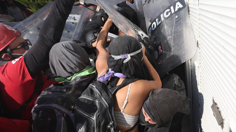 Este viernes hubo enfrentamientos directos entre mujeres que protestaban y la policía.