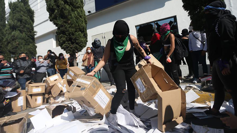 Desde el año pasado son habituales las manifestaciones feministas en la capital mexicana para denunciar los feminicidios y la violencia machista, las cuales son vigiladas por mujeres policías y suelen terminar en pintadas y algunos destrozos.