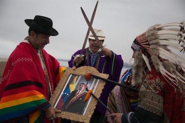 Chamanes realizaron una ceremonia por la paz mundial este lunes en Lima, ritual en que incluyeron a Venezuela, pidiendo la renuncia del presidente Nicolás Maduro, y carteles del presidente de los Estados Unidos, Donald Trump, y del líder norcoreano, Kim Jong-un.