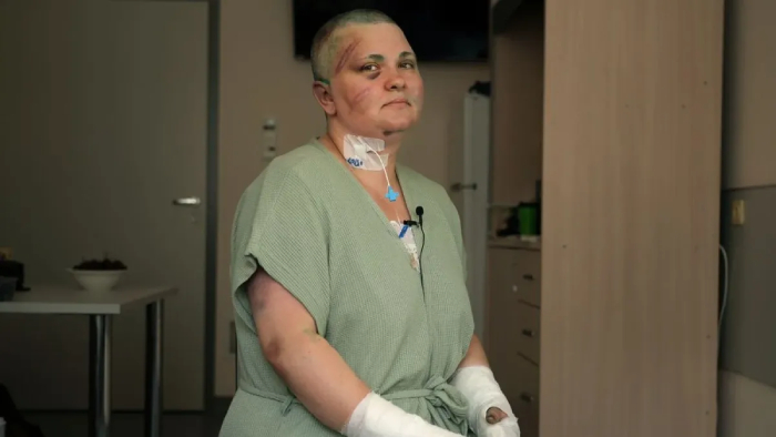 Miláshina al día siguiente del ataque en Chechenia, después de un examen en una clínica de Moscú. Foto: Anna Artemyeva / Novaya Gazeta